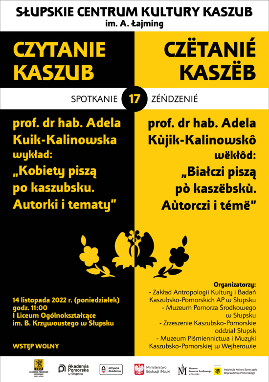 Pani prof. dr hab Adela Kuik-Kalinowska wygłosi wykład "Kobiety piszą po kaszubsku. Autorki i tematy".