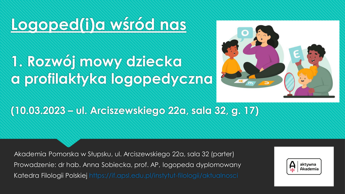 Zapraszamy do udziału w cyklu otwartych wykładów i konsultacji w ramach programu Aktywna Akademia - projekt Logoped(i)a wśród nas.