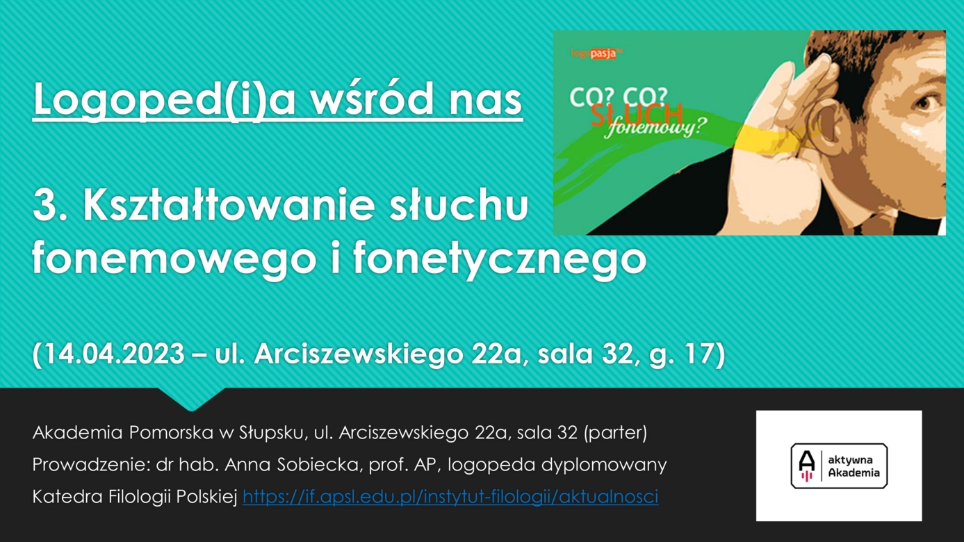 3. Kształtowanie słuchu fonemowego i fonetycznego (14.04.2023 – ul. Arciszewskiego 22a, sala 32, g. 17).