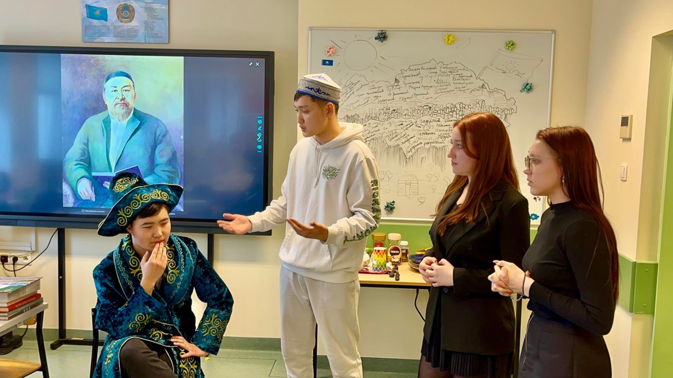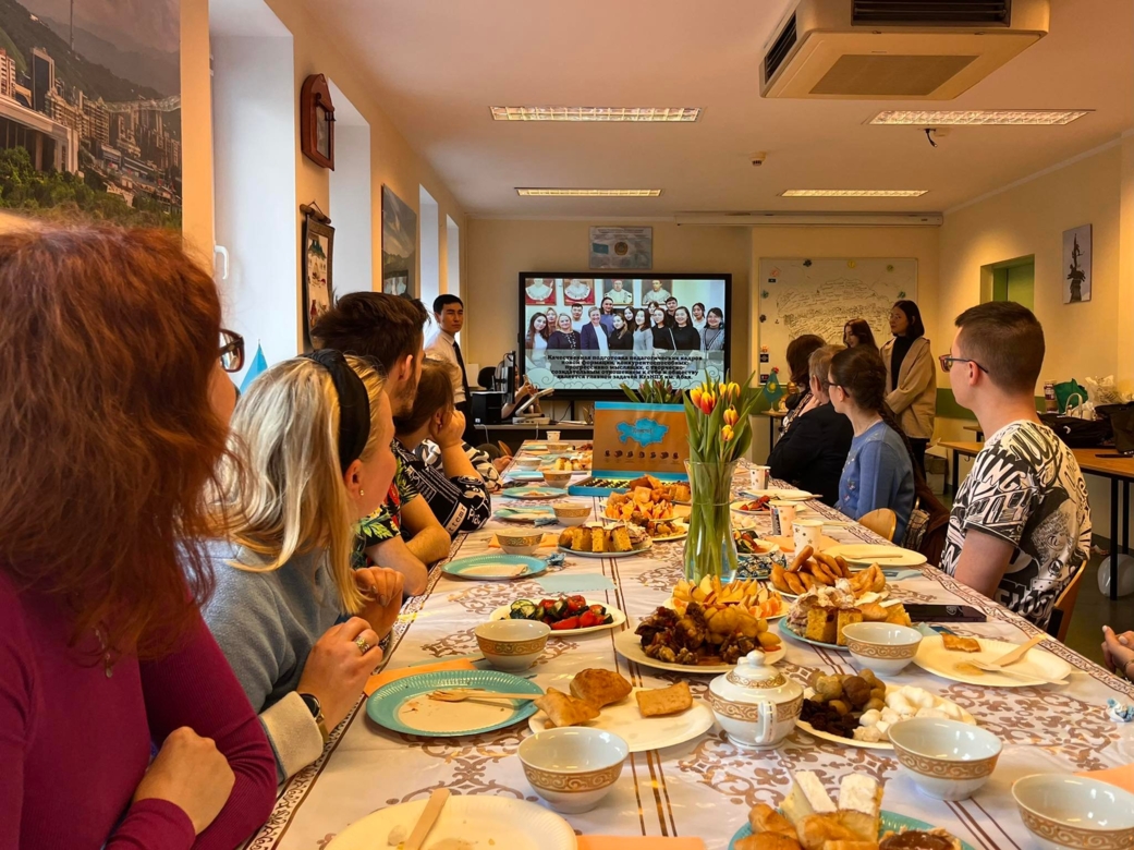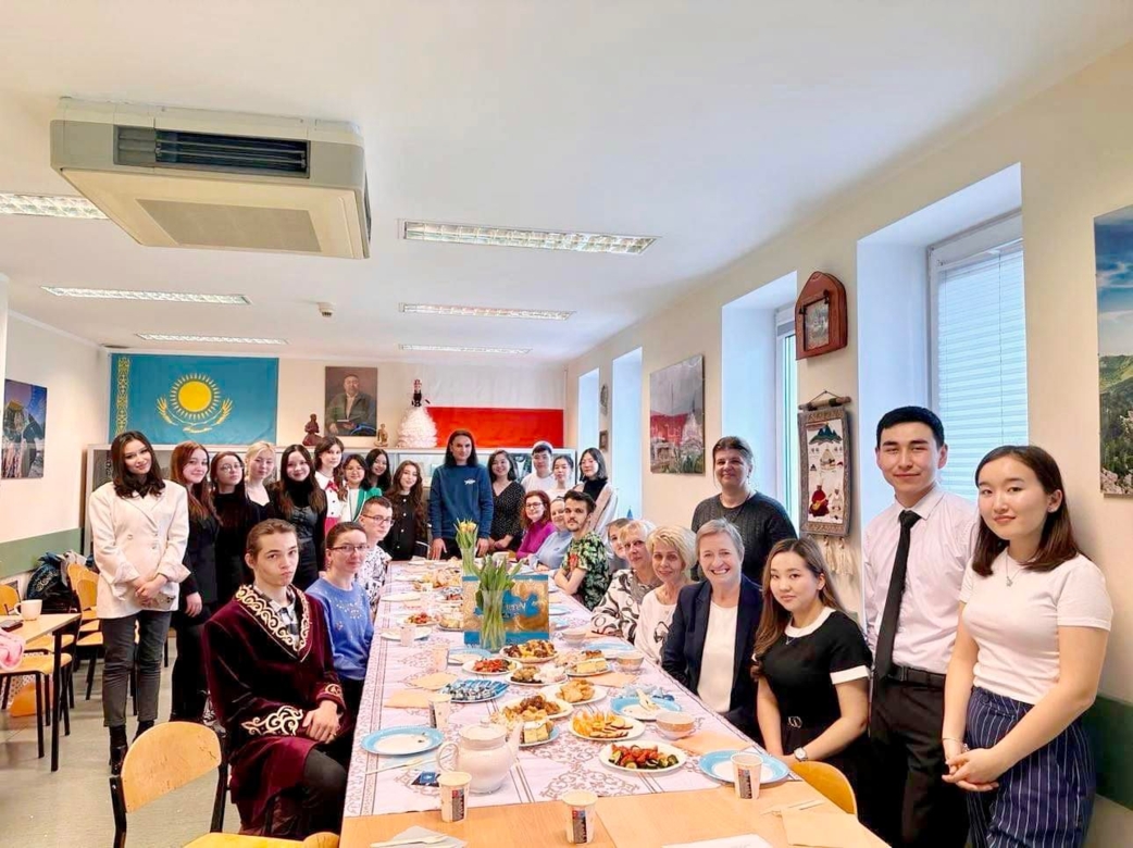 W spotkaniu wzięli udział: Pani Prorektor ds. Studentów - dr hab. Danuta Gierczyńska, prof. AP, Pani Doktor Grażyna Lisowska, Kierownik Katedry Neofilologii oraz wykładowcy i studenci Katedry Neofilologii. Goście mieli okazję, by poczęstować się specjałami kuchni kazachskiej. Studenci samodzielnie przygotowali kuyrdak (danie mięsne), baursaki (kazachskie pączki w kształcie rombu) oraz przywieźli domowej roboty irymszik, kurt i zient (słodkie i słone tradycyjne kazachskie wyroby z mleka, pszenicy i twarogu). Nie zabrakło również dobrze już znanej na słupskiej uczelni kazachstańskiej czekolady oraz unikatowej kazachskiej herbaty prosto z Ałmaty. Studenci wyrecytowali kilka wierszy w języku kazachskim na temat Wiosny oraz zaśpiewali narodowe kazachskie piosenki, jednocześnie akompaniując sobie na dombrze - tradycyjnym dwustrunowym instrumencie Kazachów. Następnie studenci zaprezentowali mini spektakl teatralny, wcielając się w postacie “Słowa 17” Abaja Kunanbajuły. Przedstawili oni również interesujące prezentacje o historii świętowania Nauryzu, o swoich rodzinnych miastach oraz o Uniwersytecie im Abaja, na którym studiują. W czasie emocjonującej zabawy goście mogli także dowiedzieć się wielu interesujących faktów na temat Kazachstanu.