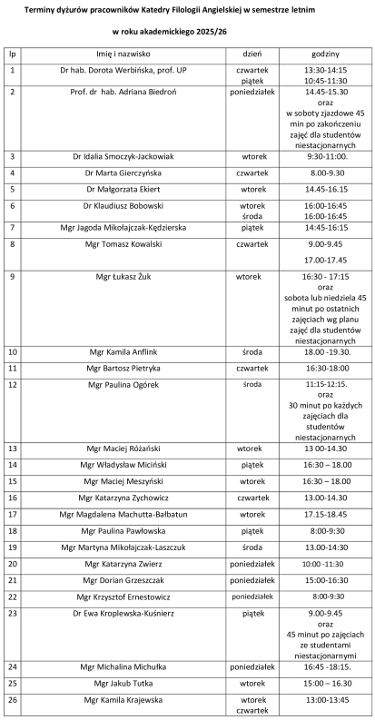 Konsultacje w Katedrze Filologii Angielskiej